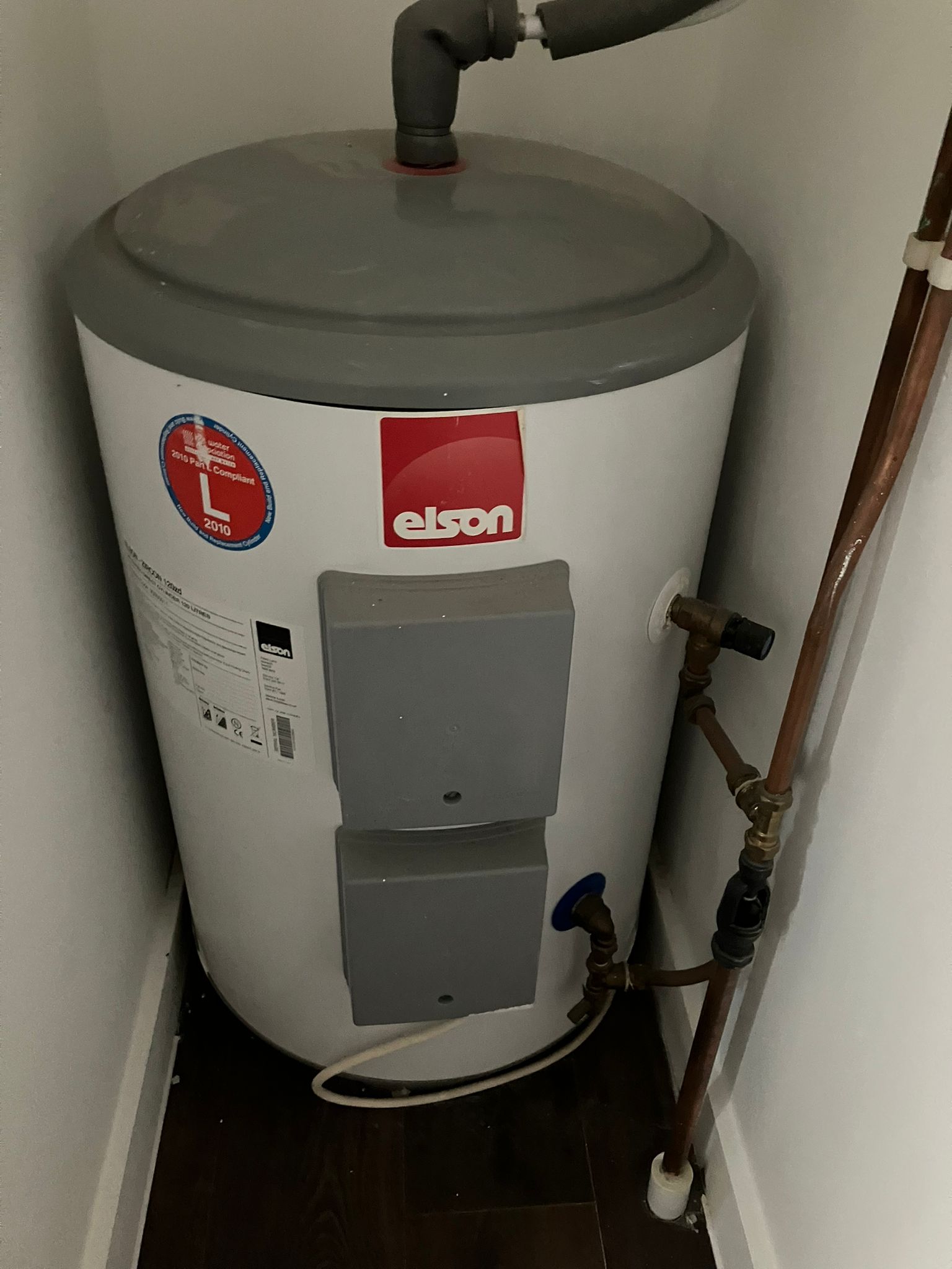 The picture below shows the hot water cylinder (Elson Zircon) that is fitted in all the 1-2 bedroom apartments.