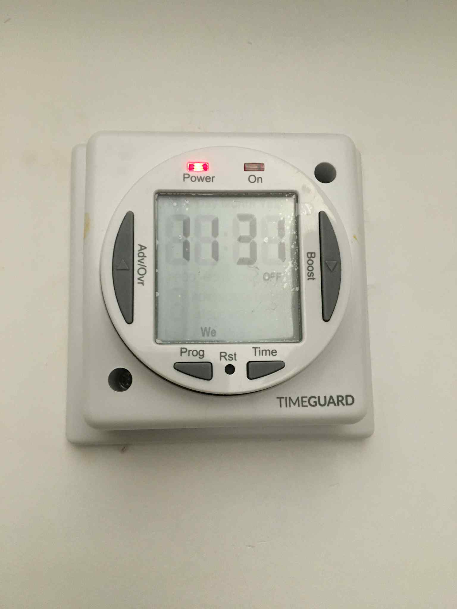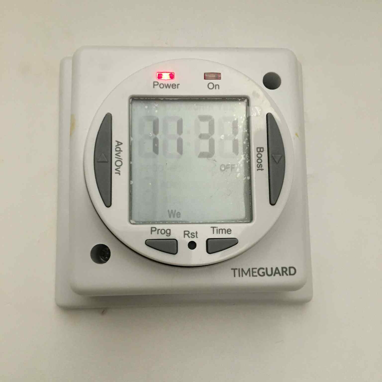 The hot water cylinders have a timer attached to the wall near them. This is a digital water timer (Timeguard NTT03/04/07/08) that you can use to control what times your water is heated up. You can set it to heat your water on a schedule, e.g. from midnight to 7am. This video shows how to do so.